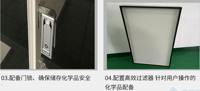 BIOBASE无管式净气型储药柜顶部配备原装进口风机和高效过滤系统,风机运作在柜内形成负压,将化学品容器中散发的有毒有害气体向上吸入,经过高效过滤系统吸附过滤,形成洁净的空气返回到室内,24小时运行可持续净化实验室内和柜内空气。