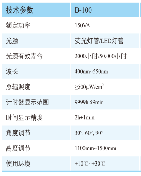 ● 升降移动式底座;光疗灯箱可与水平方向成30°、60°、90°转动。