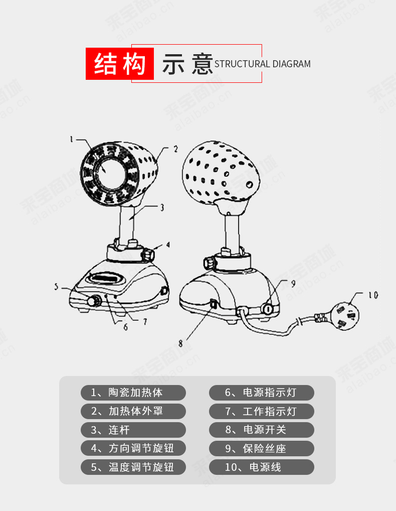 加热器可在120度范围内任意调节角度;