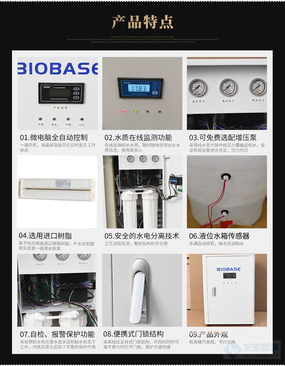 博科纯水机可将自来水直接转化为去离子水,满足医疗、化工、食品、高校、环保、检测单位等领域的实验用水需求。