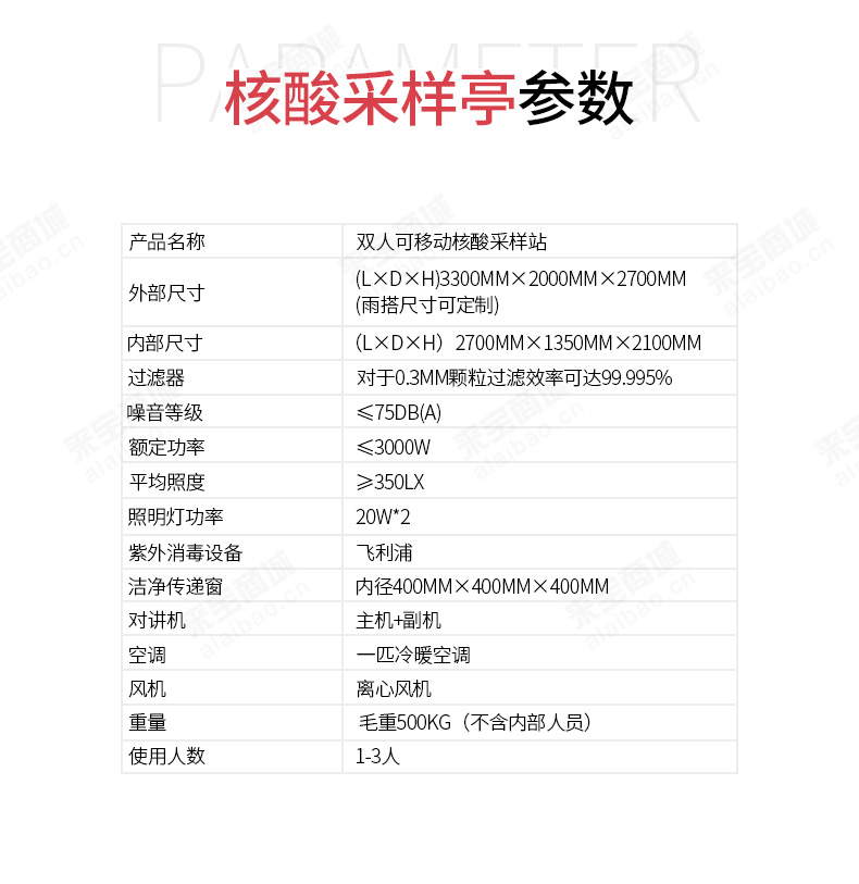 ≥(L×D×H)3300mm×2000mm×2700mm;(雨搭尺寸可定制)