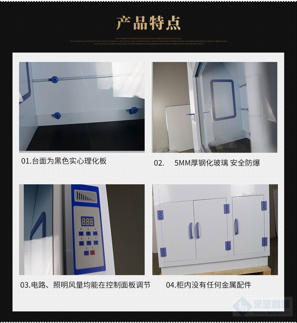 4、内衬采用8mm厚PP板制做,一体焊接工艺,内衬间有优良的气密性;导流板具有三级排风设计,保证在不同实验时产生的有害气体比重不同时,确保有害气体完全排放;