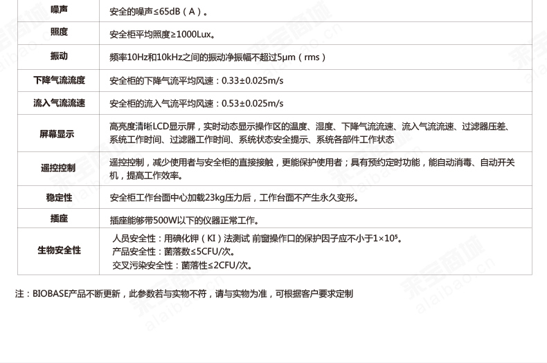 1、安全柜基本参数: