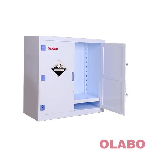 OLB系类强酸强碱存储柜,特别针对强腐蚀性化学品的存储和防渗漏而设计,PP药品柜使用存放具有强腐蚀性的化学品物质(例如硫酸、盐酸、KOH、NaOH等化学品物质)。