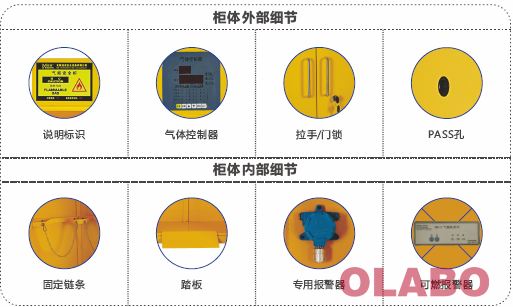 当柜内传感器检测到气体泄漏时,会自动触发红灯闪烁和报警轰鸣声,同时自动排风。