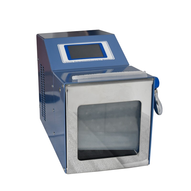 无菌均质器,又称拍打式匀浆机,广泛应用于动物组织、生物样品等匀质处理,在食品、药品、化妆品、临床、分子学、毒素及细菌检测等领域均可应用,特别适合于微生物检测样本的制备。该装置可有效的分离固体样品表面和被包含在内的微生物,处理时样品装在一次性无菌均质袋中,不与仪器接触,具有均质柔和、样品无污染、无损伤、不升温、不需灭菌处理、不需洗刷器皿的特点,满足快速、结果准确、重复性能好的要求。本产品也适合肿瘤组织(如肝癌、肠癌、胃癌、乳腺癌)的匀浆,既可得到大量的单细胞(2分钟可达2*105),必要时,可通过延长均质时间,加快均质速度,对组织细胞(如肝脏等)实现柔软的破碎。