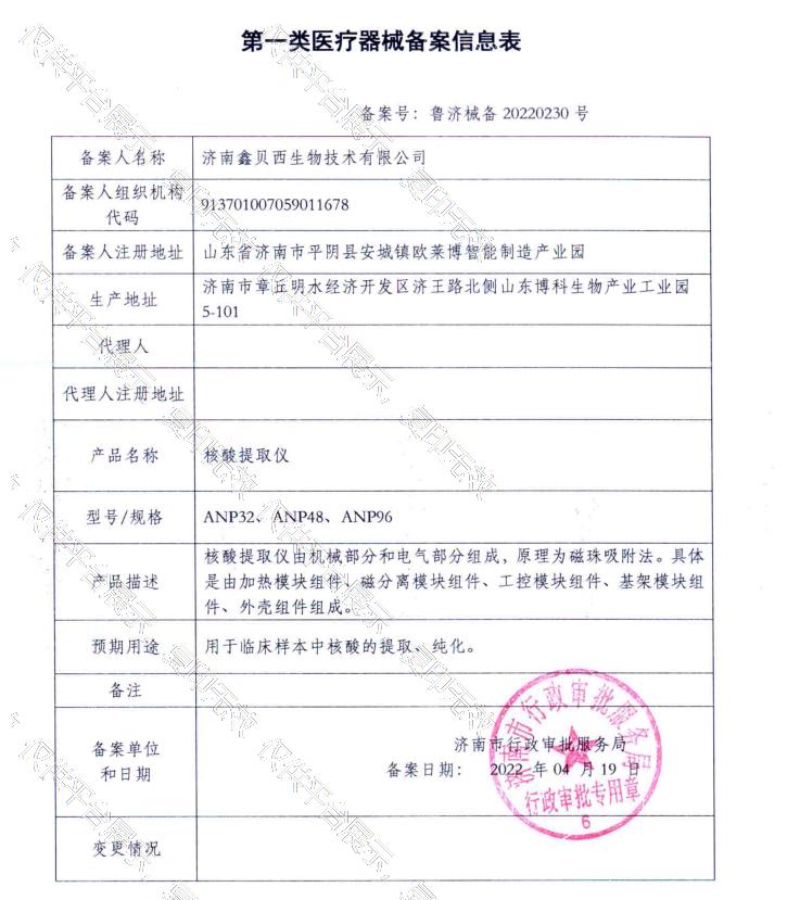 所属类目:6840临床检验分析仪器 一类批准文号:鲁济械备20220230