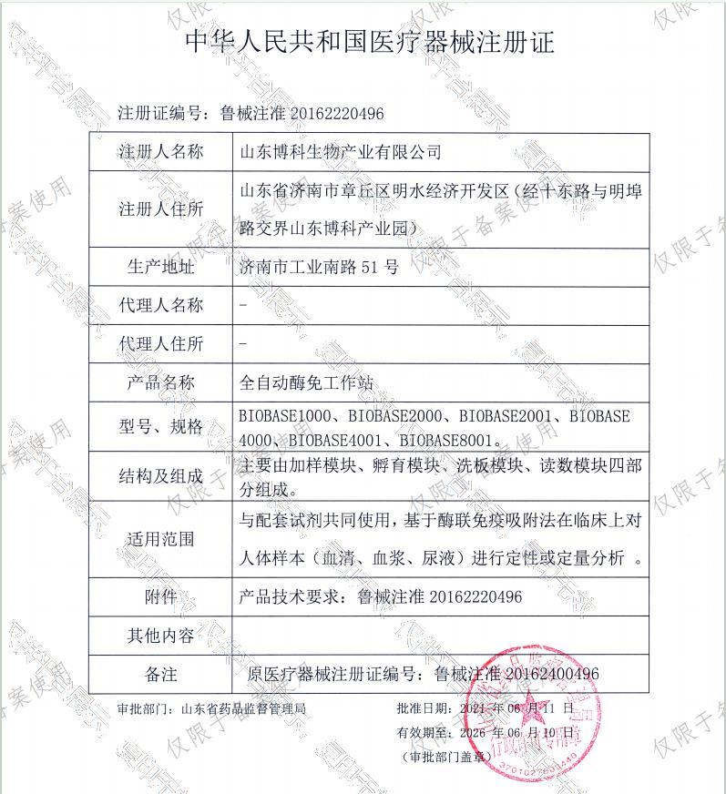 山东博科(BIOBASE)是一家集生物安全防护和体外诊断仪器研发、生产、经营于一体的高新技术企业。公司目前主要涉及诊断系统、防护系统、消毒灭菌系统、科学仪器系统、保育系统、冷链系统、软件系统、电子商务、OEM合作、净化工程10大领域,是全球领先的高科技基础医疗设备生产厂家。
