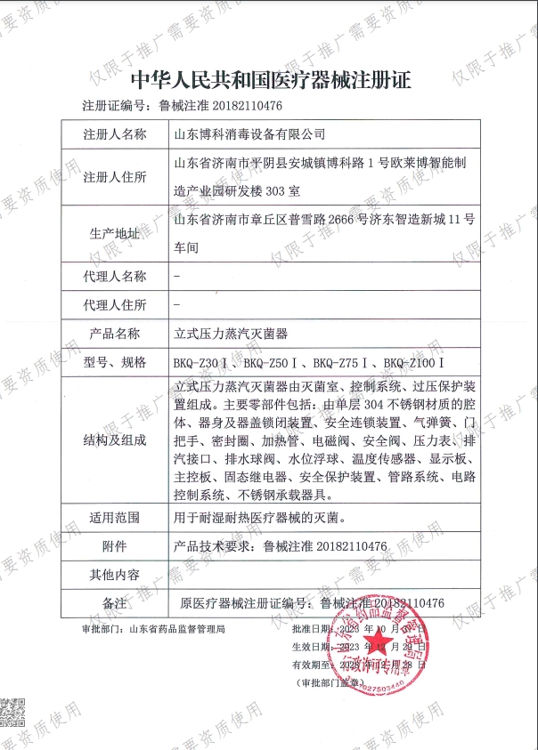 【品牌优势】 1:博科自身做安全柜起家,品牌优势明显。2:与国内同功能内循环高压灭菌器相比,价格更具优势。3、机器盖子带有防烫罩,更安全。4、我们有专业的生产研发团队,售后服务全面。5.BKQ-B50L/BKQ-B75L专用于实验室灭菌,针对实验室营养物质,溶液,培养基,液体专用灭菌具有快速冷却功能,和BKQ-B50II是不同系列非升级款,且无注册证不能销往医疗单位。