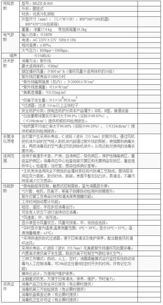 【备注】 1、灯管的使用寿命为5000个小时 2、过滤网一般一年更换一次 3、产品有效期:5年