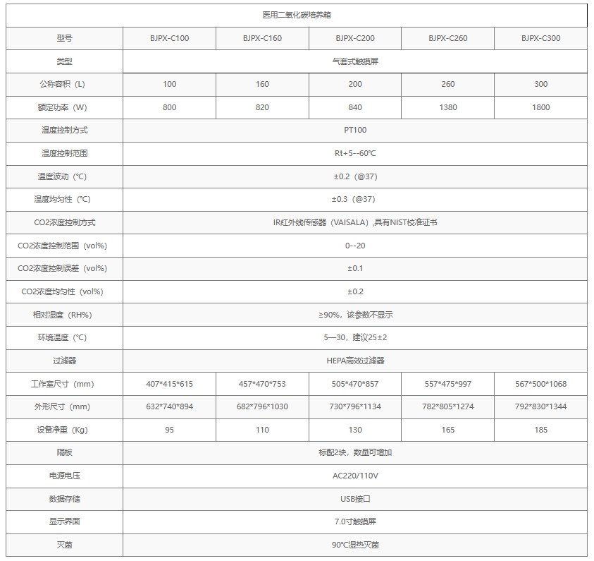 容积:160L 加热方式:气套式 CO2控制方式:红外传感器(IR) 灭菌方式:90℃高温湿热灭菌 品牌属性:国产
