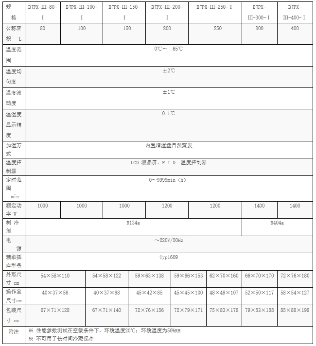 容积:101~200L 温度下限:0℃ 温度上限:65℃ 湿度范围:不带湿度控制