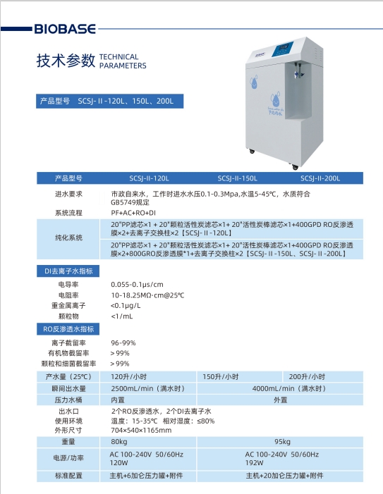 BIOBASE博科SCSJ-Ⅱ-150L实验室纯水机