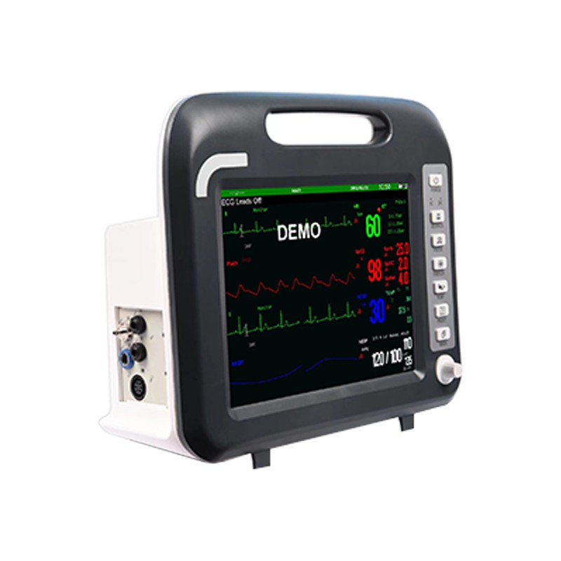 2. 标准六参数:心电,血氧,血压,体温,呼吸,心率。选配∶推车,墙壁支架,打印机,触摸屏